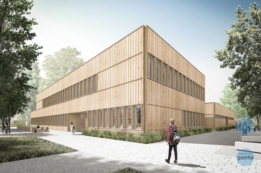 Auf dem Gelände des Heinrich-Heine-Gymnasium im Hamburger Stadtteil Poppenbüttel ist der Spatenstich für einen 2.400 qm großen Neubau mit einer Multifunktionshalle erfolgt. Nach den Entwürfen von Winking Froh Architekten hat panta ingenieure die Tragwerksplanung des bis Ende 2026 entstehenden Gebäudes vorgenommen.